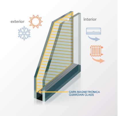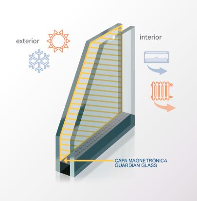 La elección más adecuada del vidrio aislante, garantiza entre el 80% del valor U de la ventana, y el 100% del Factor Solar.