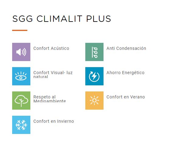 SGG CLIMALIT PLUS® es la unidad de vidrio aislante SGG CLIMALIT® que lleva incorporada vidrios de capa magnetrónica, los cuales confieren al acristalamiento propiedades térmicas y/o de control solar excelentes.