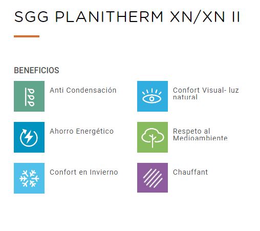 Valor U= 1,0 w/m2k), y se transmite un 72% de la energía solar.