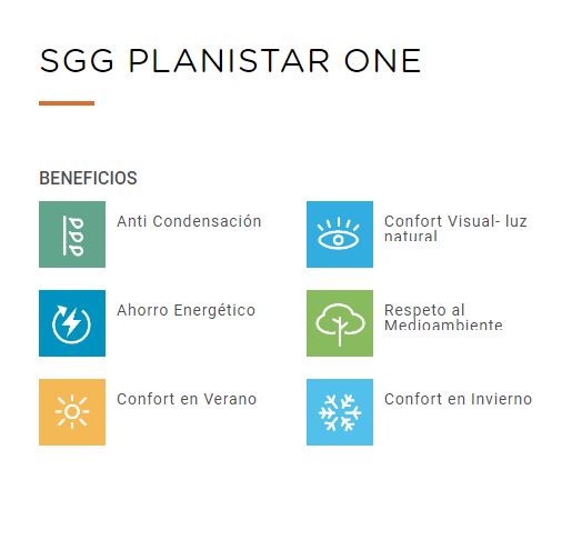 SGG PLANISTAR® ONE es una capa bajo emisiva con un minimizado factor solar, que permite obtener el máximo confort en invierno y en verano.